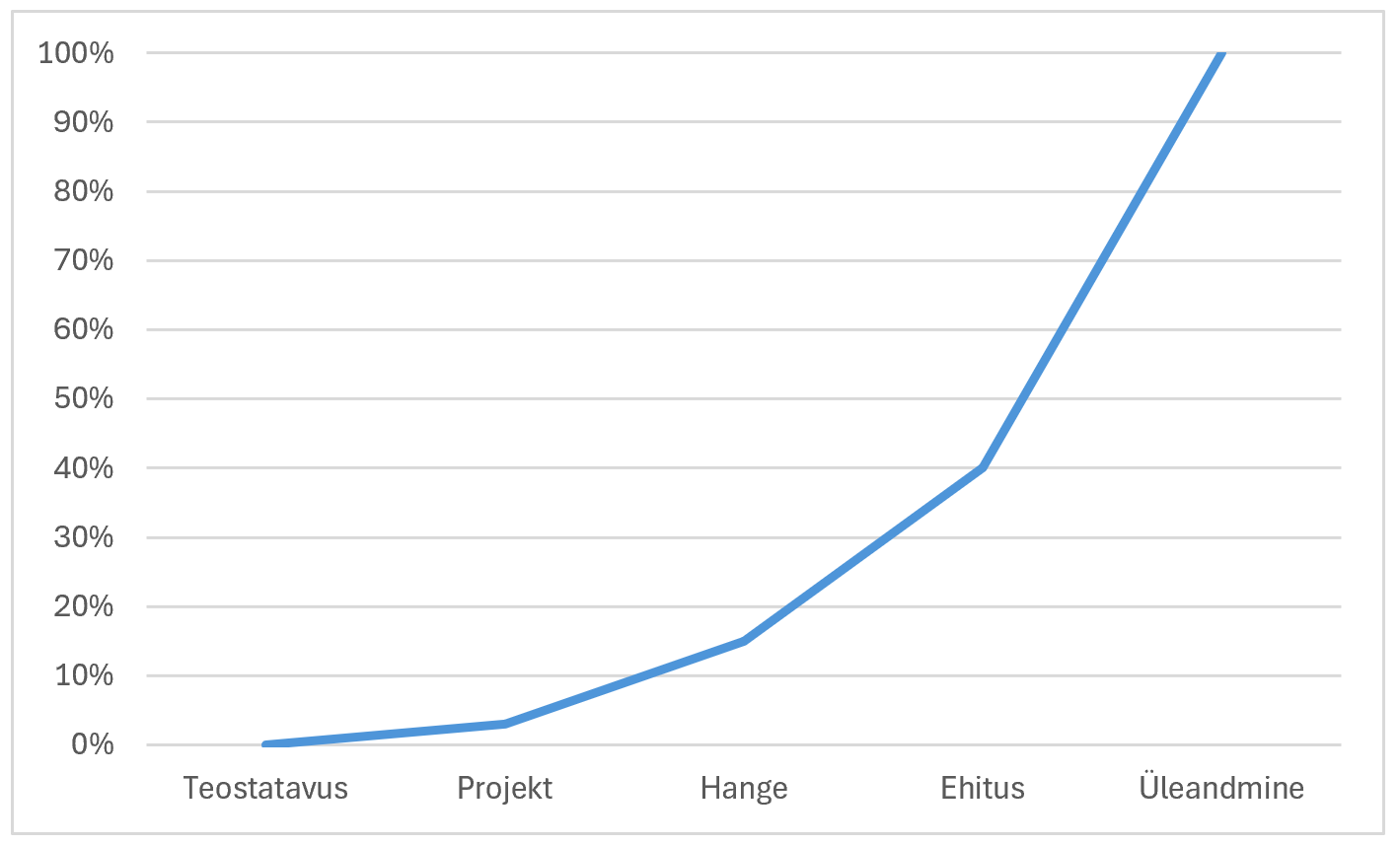 Joonis. Lisatav andmehulk vastavalt projekti staadiumile.