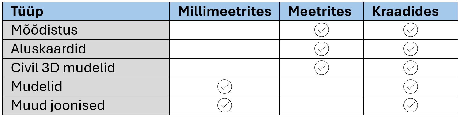- Mudelid peavad kasutama kogu projekti ulatuses ühtseid mõõtühikuid.