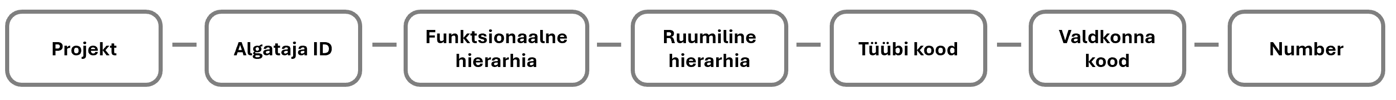 EN ISO 19650 seeria nõuab, et infokonteinerid nimetataks unikaalselt ja süstemaatiliselt. Riigiti võivad need nimetamise reeglid erineda. Allpool on toodud näide UK nimetamiseskeemist (koosneb seitsmest väljast).