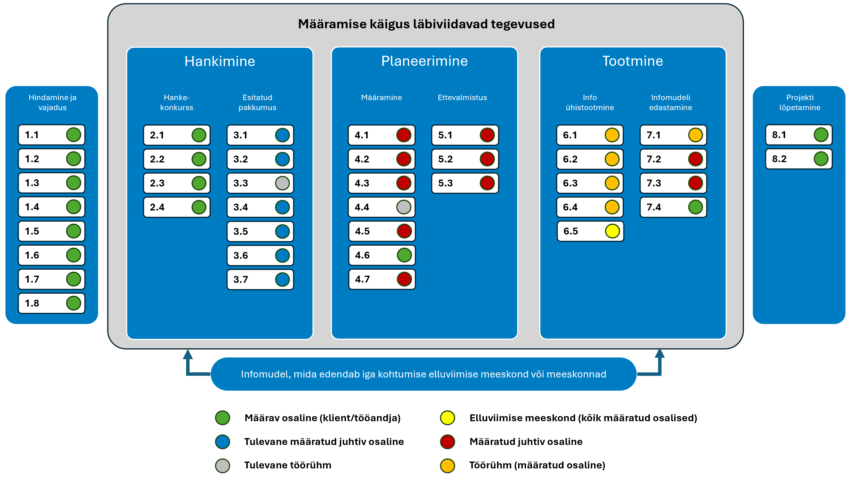EN ISO 19650-2 on jagatud kaheksaks alamprotsessiks, mis on välja toodud järgmiselt: