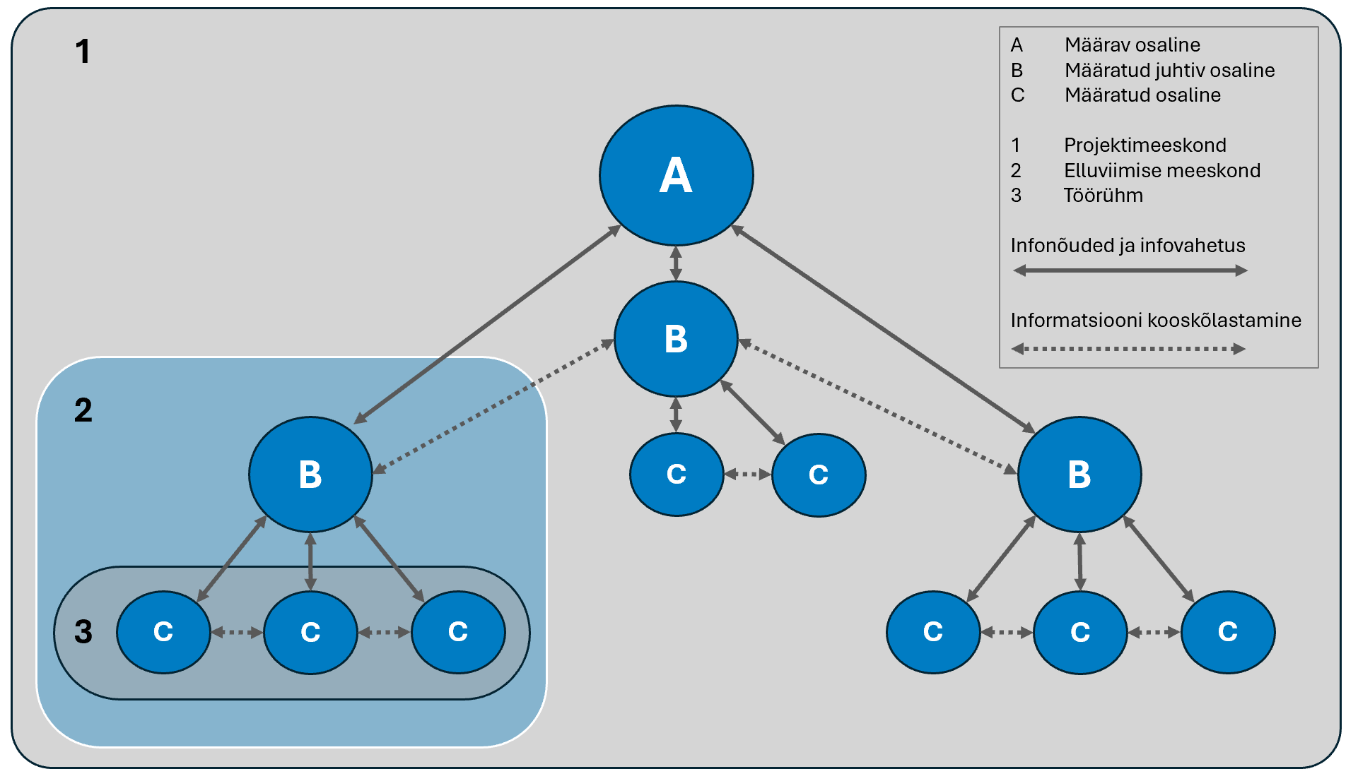 Näiteks võib arhitekt teha alltöövõtulepingu spetsialistiga fassaadi projekteerimiseks, mis nõuab märkimisväärset inseneritööd. Määramisel tekib otsene lepinguline suhe tellija (määrav osaline), arhitekti (määratud juhtiv osaline) ja fassaadi-inseneri (määratud osaline) vahel. Klient esitab arhitektile infonõuded ja eeldab, et arhitekt vastutab nõuete edastamise eest igale spetsialistile/projekteerijale. Arhitekt vastutab ka iga spetsialisti/projekteerija informatsiooni kontrollimise eest, et tagada selle vastavus projekti infonõuetele.