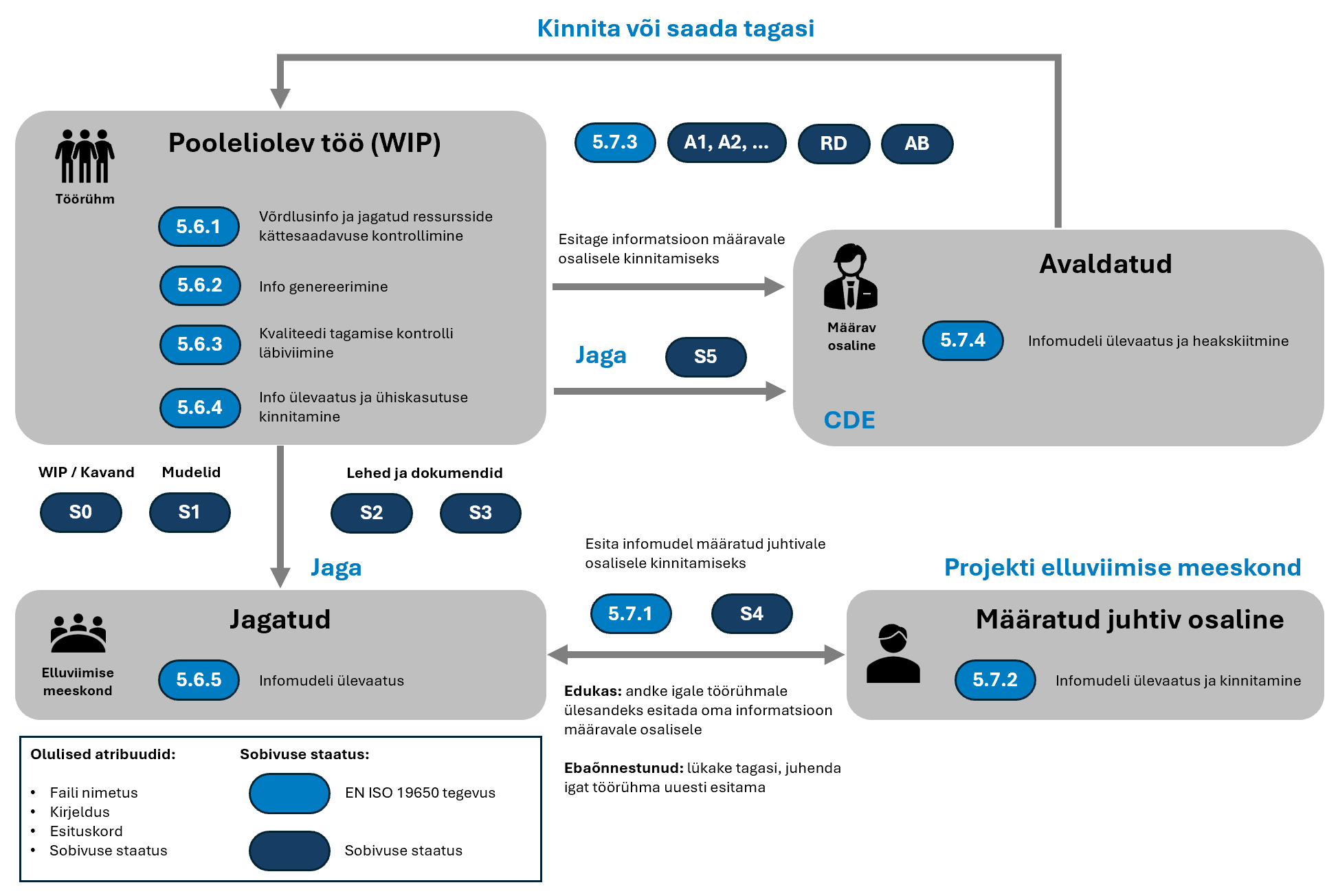 Elluviimise meeskond peaks jagatud informatsiooni üle vaatama. Sageli hõlmab see informatsiooni esialgset töölauaülevaatust, millele järgneb meeskonna koosolek, kus tõstatatakse projekteerimisega seotud probleemid. Elluviimise meeskond peaks kaaluma üldist edastamise kava ning määratud osalise infonõudeid ja vastuvõtu-kriteeriume.