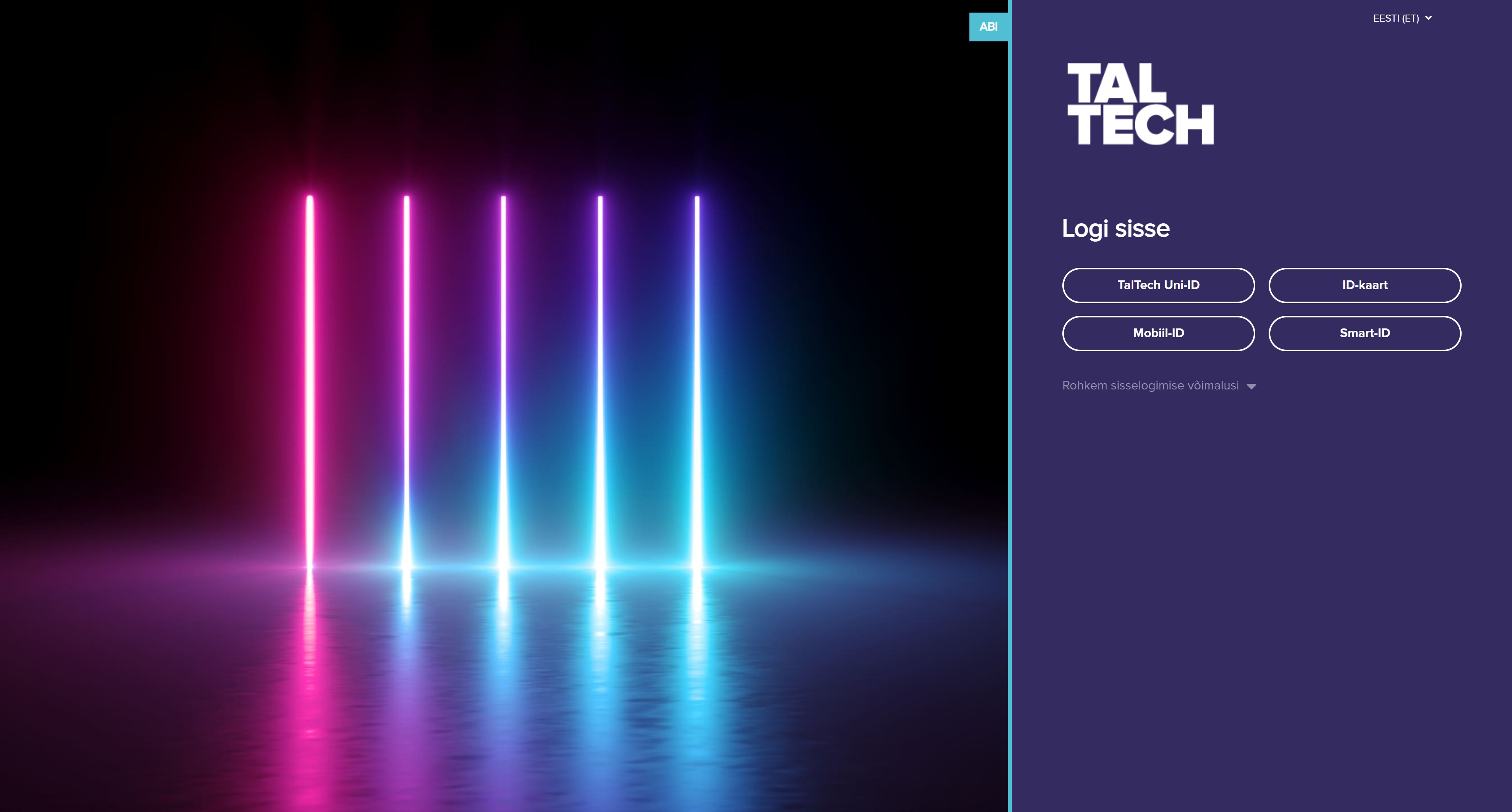 - Vali "Sisselogimine" sektsioonist sobiv registreerumismeetod (üldjuhul TalTech Uni-ID)