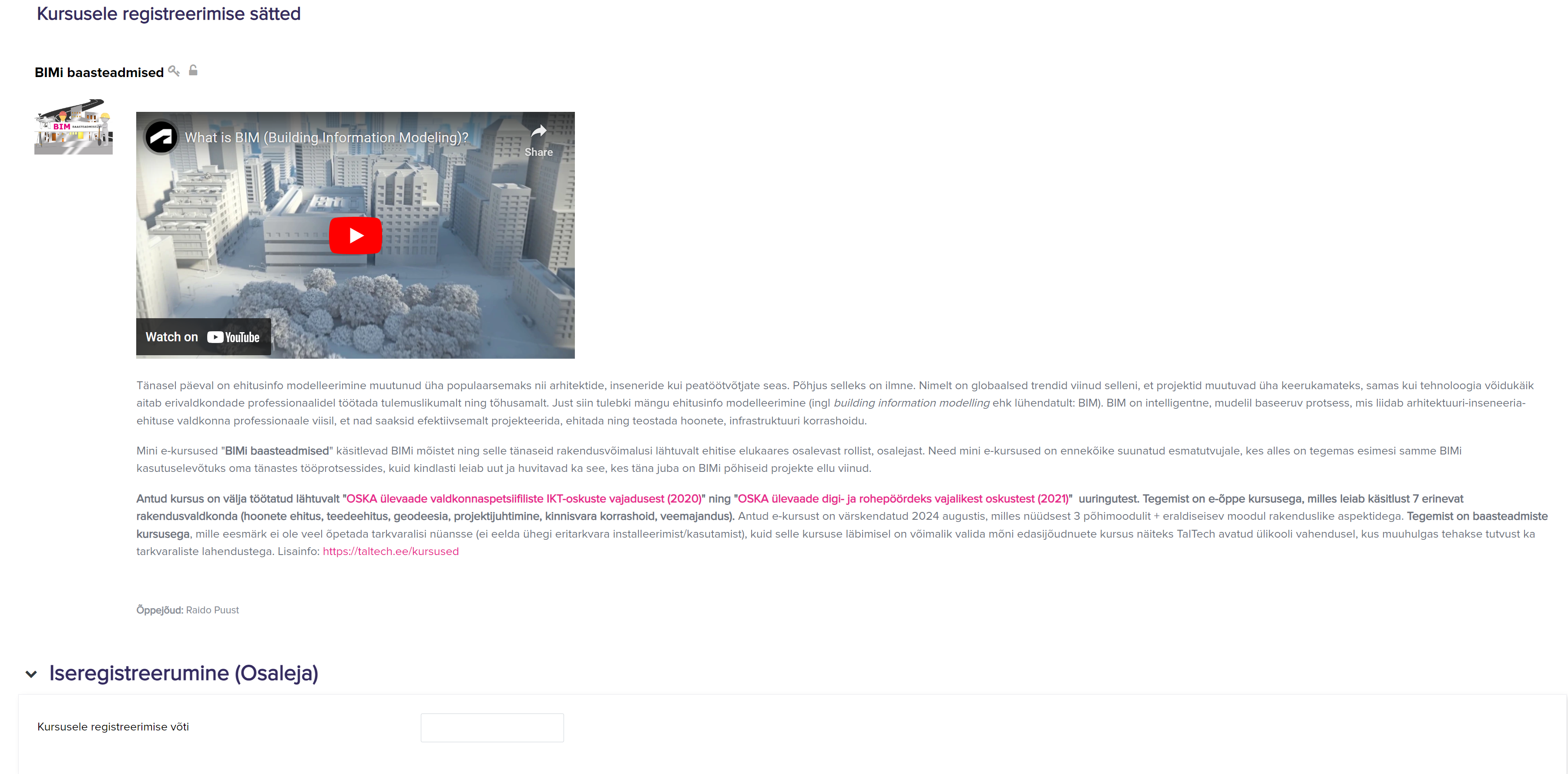Oluline! Enne kui alustad antud Moodle kursusele registreerumist, palun veendu, et oled esmalt registreerunud TalTech veebilehe kaudu (https://taltech.ee/kursused)