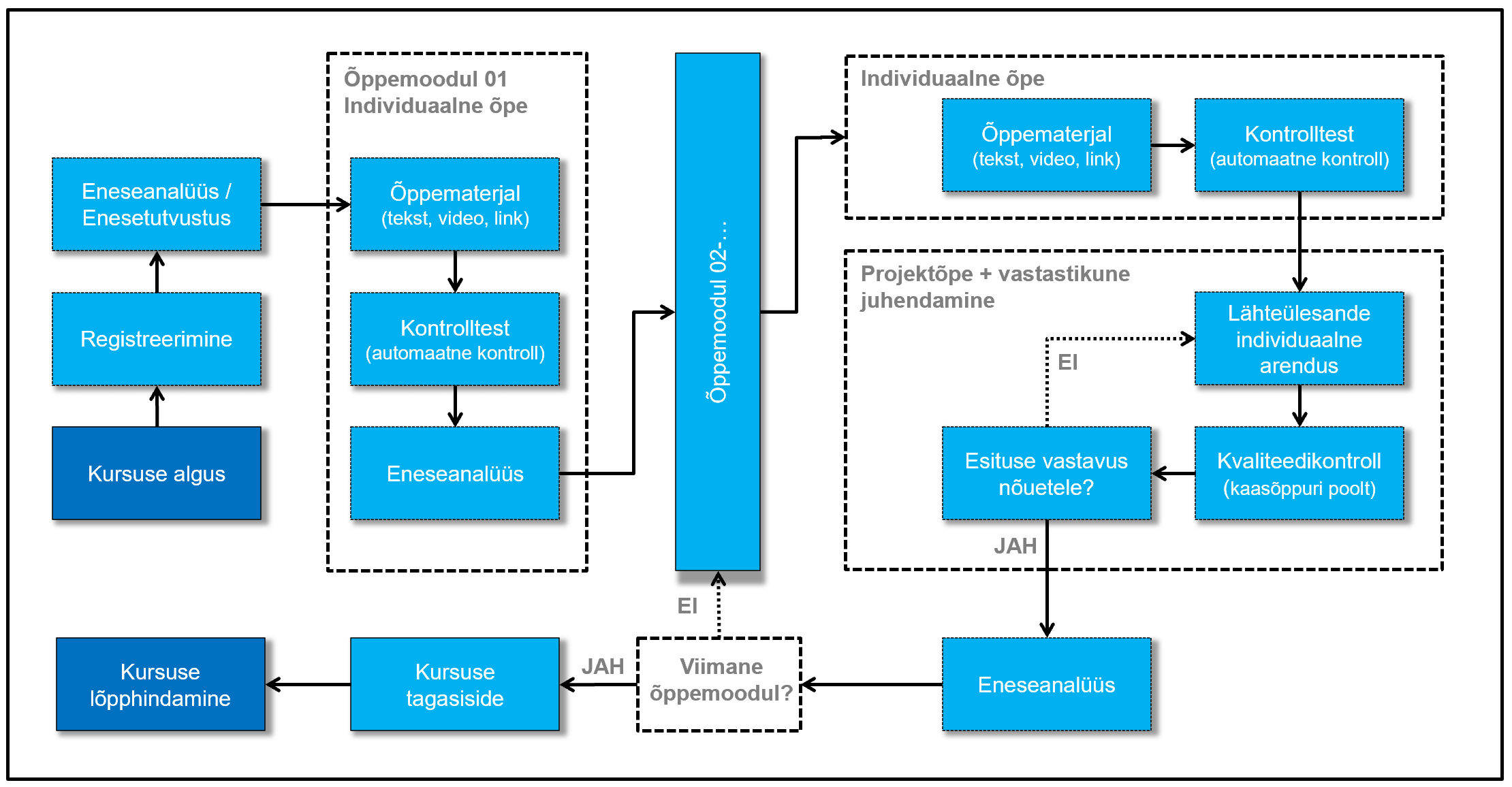 Põhimõtteline kursusel osalemine on esitatud alljärgneval plokk-skeemil.