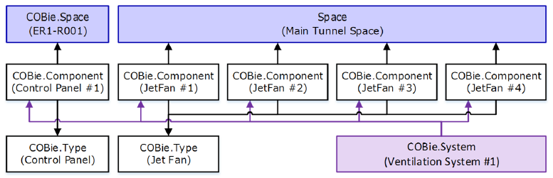 - COBie.Floor - ehitise vertikaalne jagamine; tavapärased tunnelid on n-ö ühetasandilised, kuid on ka mitmetasandilisi tunneleid, kus on nii alumised kui ülemised liikumisrajad; infra juures saamegi defineerida Floor kaudu vastava liikumisraja; samas kui komponendid, mis jäävad tunnelist väljapoole, on defineeritud omaette Floor sättega;