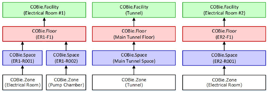 - COBie.Facility - kirjeldab ehitist tervikuna, üks kindel tunnel, üks kindel sild; kui tunnel sisaldab alamtunneleid, siis on need omaette Facility üksused;